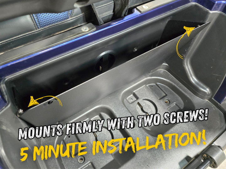 Upgrade your D5 golf cart with our Storage Basket – the ultimate storage solution for golfers. Designed to bolt seamlessly to existing holes in the bag well, this basket offers a sleek and slim shape that tucks perfectly behind your golf bags. Whether you need to store a jacket, shoes, club head covers, or other essentials, the Sweater Basket has you covered – literally! Installation is quick and easy, taking only five minutes with two bolts (included). Never worry about lack of storage again while out on the course.